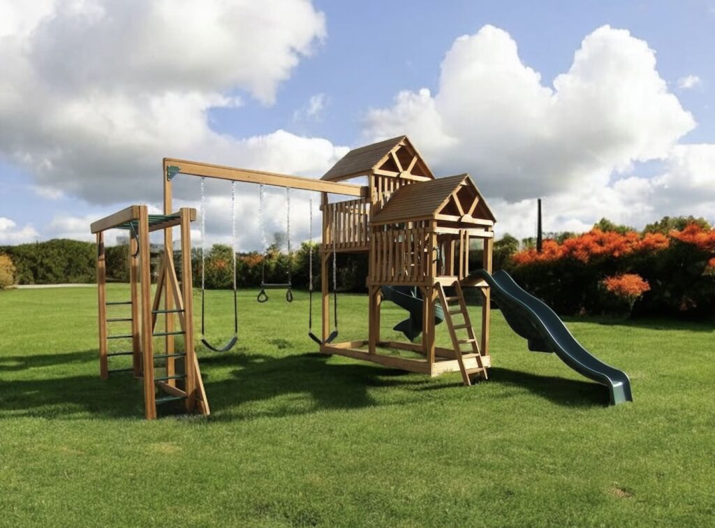 Crafted from premium treated lumber, these swing sets bring a natural look that blends seamlessly into any backyard. As a result, families enjoy the warmth and charm of real wood without sacrificing durability.